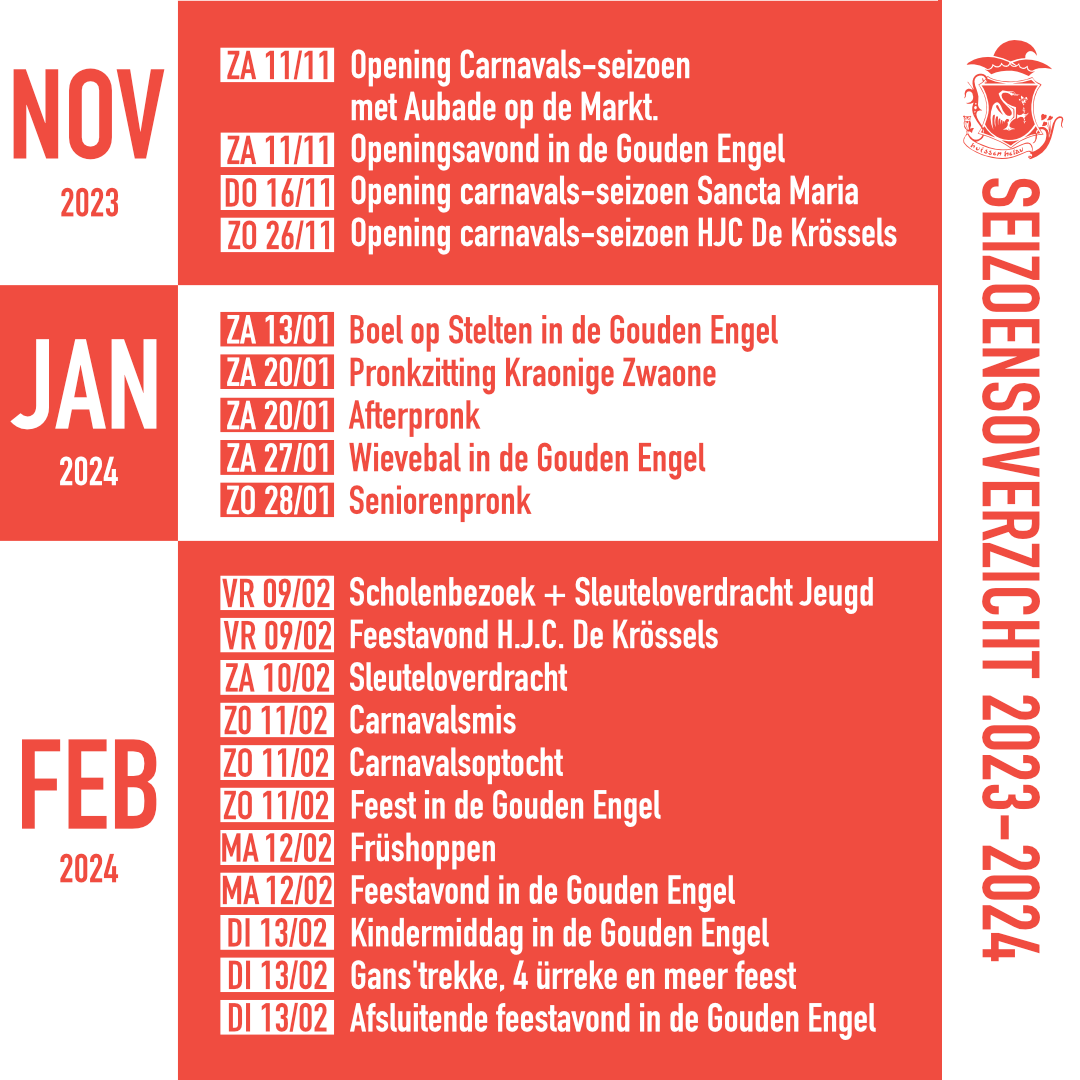 En dat seizoen gaat bijna van start. Om 11-11 om 11:11 zal het kanon klinken en gaan de steken op. Vanaf daar gaat een lange dag feest van start.